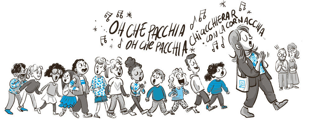 Ad arricchire e sostenere la lettura intervengono le illustrazioni di Chiara Di Vivona. Con il suo tratto espressivo ed efficace, ormai familiare ai lettori e alle lettrici di Storybox, accompagna lettori e lettrici tra le vie di Alzalebraccia e mette in scena personaggi buffi, teneri e frizzanti, sia nei ritratti singoli, sia nelle scenette corali.