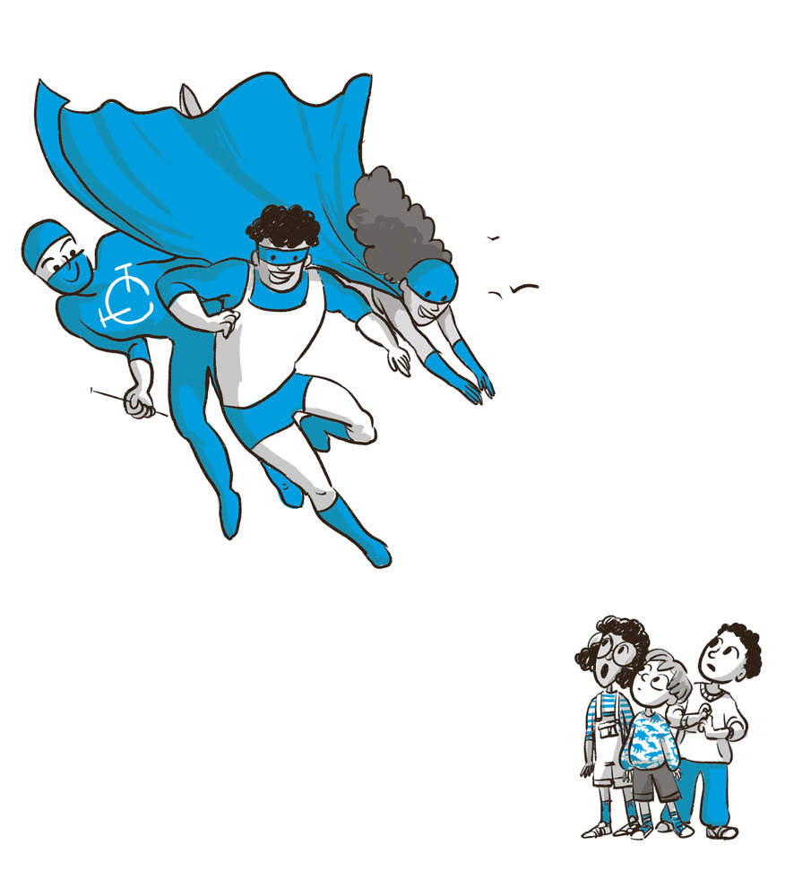 Ed è proprio attorno alla figura di questa ragazzina generosa e battagliera che la storia prende forma. Con un vissuto familiare particolare, Titti è cresciuta con un’attitudine all’indipendenza e alla cura nei confronti della natura, degli animali e anche delle “cose” di uso quotidiano. Condivide la stessa fiammella di gentilezza e rispetto che anima la sua maestra, Sonia Fioccochiaro, arrivata ad Alzalebraccia da pochissimo tempo. Lo sguardo divertito con il quale inizialmente osserva l’atteggiamento passivo dei suoi concittadini e colleghi durante l’attesa dei Supereroi si trasforma ben presto in sbigottimento, indignazione e desiderio di cambiare le cose.
