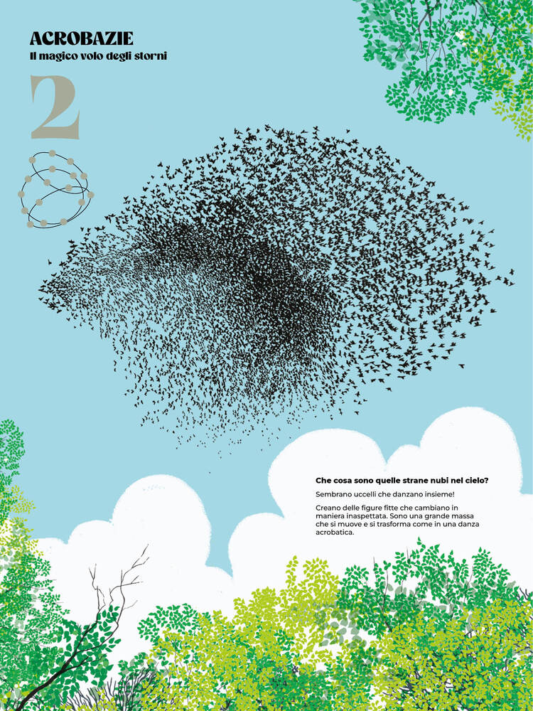 In natura, molti animali si muovono in gruppo come se seguissero una coreografia segreta. Migliaia di storni girano all’unisono nel cielo, i pesci nuotano formando nubi scintillanti sott’acqua e le api comunicano attraverso le loro danze ipnotiche. Nell’aria, nell’acqua o sulla terra, i loro movimenti sono così precisi e sorprendenti: scoprirli e studiarli è una meravigliosa avventura.