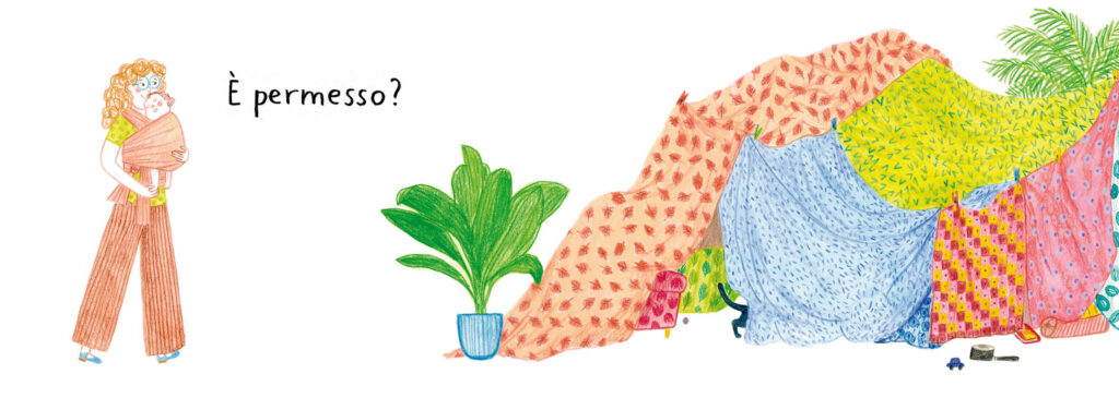 Un delizioso albo che è quasi senza parole (le uniche sono appunto “È permesso?”), in cui il gioco libero dei bambini incontra un mondo adulto che lo sa rispettare: i grandi chiedono il permesso per entrare nello spazio della fantasia, e c’è posto per tutti, con le diversità di ognuno.
