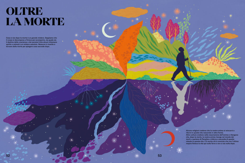 Un albo divulgativo splendidamente illustrato che indaga il tema della morte e della ciclicità della vita con grande naturalezza e senza tabù. Un libro trasversale, ricco di collegamenti a contenuti scientifici, antropologici e culturali, per capire e rispondere alle domande che tutti ci poniamo su cosa c’è Oltre.