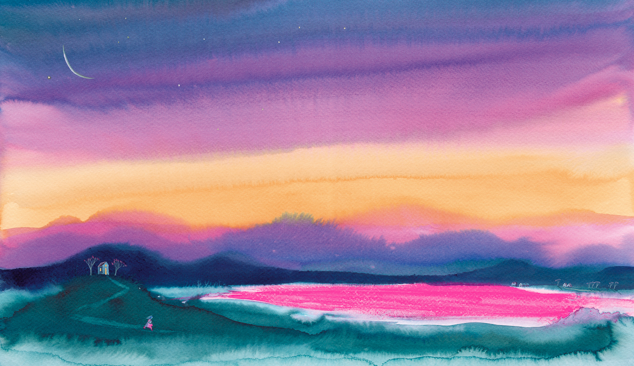 All’intensa sfumatura di blu della bambina protagonista, colore-simbolo dell’autrice, con tutta la sua carica intima ed evocativa, si accostano profonde e accoglienti tonalità di rosa e di viola, che ci guidano tra paesaggi onirici, albe eteree e splendidi tramonti.