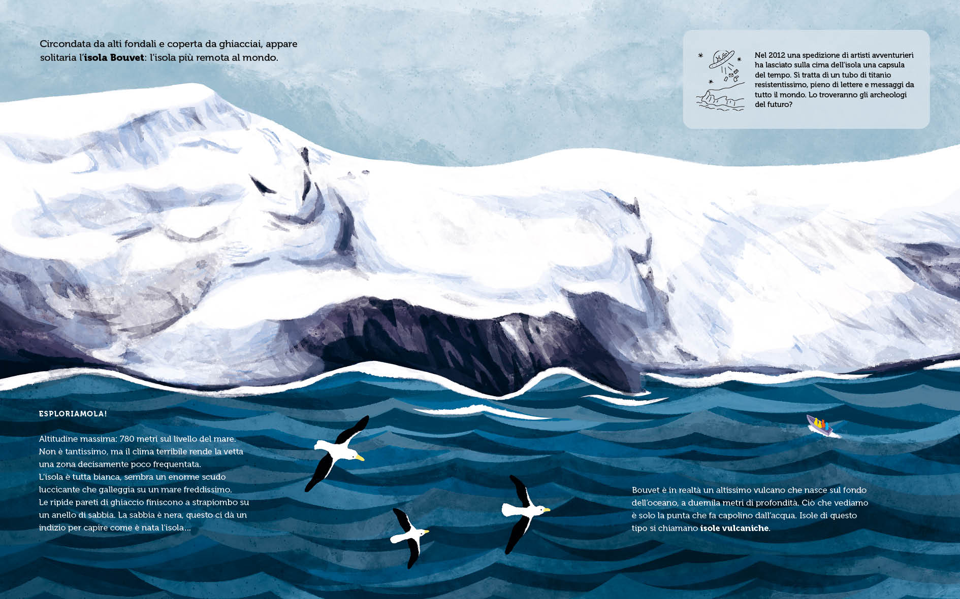 Accompagnato dalle raffinate illustrazioni di Martina Tonello, il ricercatore ed esperto di Storia della scienza e della comunicazione Giovanni Blandino ci porta alla scoperta di tutto ciò che può essere chiamato “isola”: dalle isole vulcaniche a quelle “a intermittenza”, dalle isole coralline alle oasi nel deserto fino alle isole artificiali, a quelle fantastiche, alle micronazioni e a quelle “persone isola” che aspirano alla più completa solitudine, come gli eremiti.