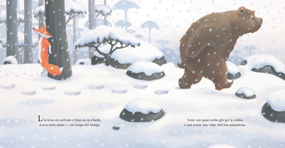 L’inverno è arrivato e per Orso è tempo di andare finalmente in letargo. Mentre si incammina verso la sua grotta incontra una volpe che osserva: