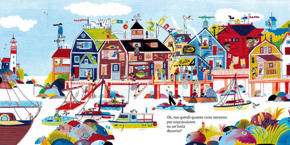 I due bambini protagonisti finiscono su un’isola deserta, ma non c’è nulla di cui preoccuparsi: infatti, in realtà non sono soli ma possono godere della compagnia di tutti i libri che hanno letto, amato o che devono ancora scoprire.