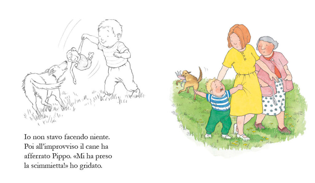 Anche in questo nuovo episodio della popolarissima serie Tom e Pippo, Helen Oxenbury mostra tutta la sua grandezza nel saper raccontare con vivacità e autenticità le piccole avventure quotidiane, e quanto possano essere dirompenti per un bambino. Il testo gioca ironicamente con le illustrazioni (“Io non stavo facendo niente” dichiara Tom, ma noi vediamo come stava sventolando Pippo davanti al naso del cane…) e le immagini sono incredibilmente fresche ed espressive nel mostrarci le emozioni dei protagonisti.