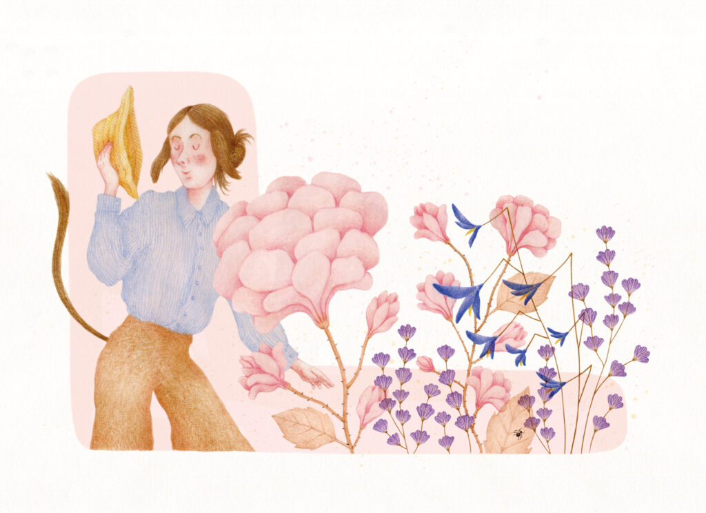 Non mancano poi sottili e ingegnose citazioni per i lettori più adulti e gli appassionati, che potranno divertirsi a identificare titoli e riferimenti all’opera della scrittrice inglese disseminati sia lungo il testo sia nelle splendide illustrazioni: dall’iconico capanno degli attrezzi in giardino alla famosa riflessione sulla scrittura paragonata a una tela di ragno, dalle lettere a Vita al rapporto con suo marito Leonard, sarà una delizia seguire, come un segugio, le tracce di poesie, saggi e racconti.